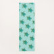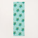 Cute yoga mat design features little blue -green turtles pattern on aqua background
