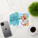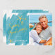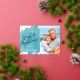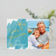 Nautical Boutique Co.'s minimalist Seas & Greetings foil holiday card design features modern hand-written script typography, your favourite portrait photo (5x7 ratio), and watercolor starfish accents for a fun tropical beach holiday theme. The design is set on an aqua teal watercolor swatch background. #SeasAndGreetings #HolidayCards #TropicalHolidays