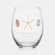 Watercolor Seashells Couples Name Wedding Favour Stemless Wine Glass