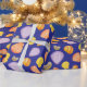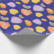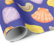 Celebrate special occasions with this wrapping paper featuring a colourful pattern of red, yellow, and violet seashells in watercolor on a blue background.