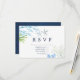 Trendy navy and white ocean theme beach wedding RSVP cards featuring sea ferns, seaweed and starfish designed to be quickly and easily customised to your event specifics.