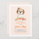 Invite guests to your event with this customisable birthday invitation. It features watercolor illustrations of a cute Shih Tzu, and peach flowers. Personalise by adding your details. This cute Shih Tzu invitation is perfect for birthdays, baby showers, and other events.