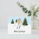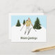 Send warm winter wishes with this watercolor design postcard featuring a woman skiing in a yellow jacket and green scarf through fir trees under a snowy blue sky. The design includes a personalizable text area for a “Winter Greetings” message, making it perfect for holiday cards, winter getaway announcements or cozy lodge-themed notes. Elegant and festive, this postcard adds a snowy, seasonal touch to your correspondence and lets you share a stylish, personalized greeting with friends and family.