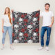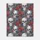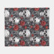 Watercolor Skulls and Roses Red Grey Fleece Blanket