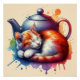 Watercolor Sleeping Cat Teapot Poster