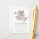 Cute winter baby shower book request cards for your baby shower featuring a watercolor illustration of a baby snow leopard surrounded by red and white winter flowers, red holly berries, and lush green leaves. The watercolor snow leopard baby shower book request cards feature a request to bring a book or add your own custom text. The card reverses to display a matching winter floral bouquet. The design coordinates with our Cute Watercolor Baby Animals Winter baby shower collection.