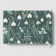 Watercolor white snowdrop pattern on a dark sage green background for a funeral or memorial service.