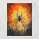 A beautiful black spider in a web with a orange background watercolor Halloween art