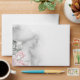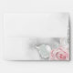 Pewter grey watercolor splash sets off these pretty pink roses in a BOHO modern style. Envelopes are decorated inside and out. This is part of a wedding stationery collection with matching wedding accessories. Design created for the BarefootBride™ © by WhimsicalArtwork™