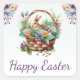 Watercolor Spring Flowers Basket Happy Easter Square Sticker