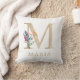Watercolor Spring Wildflower Faux Gold Letter "M" Throw Pillow. This beautiful hand-painted watercolor design features yellow wildflowers, pink wild roses, and blue delphinium flowers with a faux gold letter "M" and a name that can be easily personalised. This design is part of the Spring Wildflower collection that can be viewed by clicking on the above collection link. (The back of the pillow has the same design, but you can easily delete the design/monogram/name, then add a background colour to match the flowers on the front.)