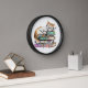 The size of the clock is dramatic and the abstract alcohol ink design is soothing and intricate at the same time. I chose the black frame that adds pop to the blue and gold design. The gold printing would be better in a slightly darker or larger font. I love it and I’m looking for just the right place in ny new apartment. I would recommend this clock for a personal gift or a present. I feel that the quality is excellent for the money! I’m a bit of a clock nut so I’m pretty particular about my purchases. The clock is larger in diameter than many if the clocks I have, so it stands out very well. I think a slightly darker printing color and a moderately larger size would best suit a professional decor or add more impact in a work place item.