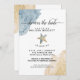 Nautical Boutique Co.'s coastal bridal shower invitation for your beach-themed "Shower the Bride" party features dusty blue- and beach sand-tone watercolor swatches and matching watercolor starfish. The typography is elegant script hand lettering paired with modern block lettering. It's perfect for the beach bride! #CoastalWedding #BeachWedding #ShowerTheBride