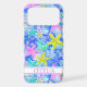 Customise this colourful watercolor starfish in blue, aqua, yellow and pink iPhone 17 pro max case with your your name in a trendy modern CAP font in pink on white. It's so modern and trendy!