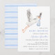 Watercolor Stork Blue Boy Baby Shower Invitation