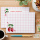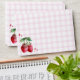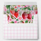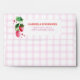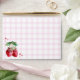 This design features pink checks and watercolor strawberries on the front, back flap and on the inside of the envelope. You can customise your name and address on the back. This design has a colour palette of pink, red and green. This design compliments my Berry First Girl's birthday collection. See the whole matching collection.
