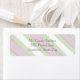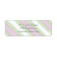 A cute digital watercolor wash diagonal striped pattern in pastel shades of sage green and mauve pink with a sample name and address in a classy engraved look font and a darker shade of green. Just replace the details with your own.