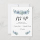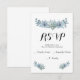 Simple, chic & boho blue watercolor wedding invitation RSVP card with succulents and flowers.