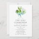 Mint teal blue floral watercolor succulent desert cactus plants boy first holy communion invitation with elegant handwriting typography customisable to your event specifics.