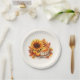 Thanksgiving brunch plates with pie, pumpkins, and a large sunflower.