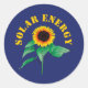 Watercolor Sunflower Solar Energy Navy Blue Classic Round Sticker