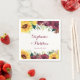 These wedding napkins feature watercolor sunflowers, burgundy roses and green leaf foliage. Personalise them with your names and wedding date. These napkins are part of a collection which includes a full range of matching wedding stationery and bridal products. Please visit our store or our collection pages to see the full range.