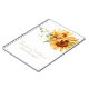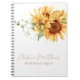 This custom notebook features a beautiful watercolor floral design. The background is a simple white with yellow watercolor sunflowers. A delicate bouquet is pictured in the top, and personalised below with a sample name printed in a script font, followed by a sample title or additional text.