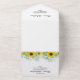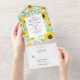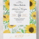 Design features a bouquet of watercolor yellow sunflowers, eucalyptus and others leaves and twigs on white background