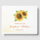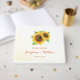 This wedding guest book features watercolor sunflowers. You can personalise it with bride and groom names and wedding date both on the front cover and the spine. This guest book is part of the Sunflower Watercolor Wedding Collection which includes a full range of matching wedding stationery such as wedding invitations, reply cards, information cards, address labels, postage stamps, envelopes, favour boxes, wishing well cards, programs, menus, bridal gifts and much more. Visit the collection page in our store to see the full range of products that you can personalise for your wedding.