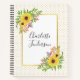 Yellow watercolor sunflowers with green leaves, fall leaves and berries and green, white polka dots notebook.