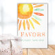 Brighten up your celebration with this watercolor sunshine favours sign, perfect for a baby shower or birthday party! Designed in soft, muted tones of brown, terracotta, blue, yellow, and orange, this cheerful sign features a smiling sun illustration and playful, modern font for a warm and inviting look. Whether you're planning a spring or summer event, this sign adds the perfect touch to your boho-inspired decor. It's gender neutral and ideal for themes like "here comes the sun" or "you are my sunshine", making it a versatile and budget-friendly way to guide your guests towards the favour table in style. Add a sunny finishing touch to your celebration—grab your favour sign today!