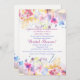 Soft hues and fantasy flowers in a variety of shapes form a top and bottom matching border in this chic invitation.