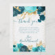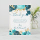 Watercolor Teal and Gold Flowers Birthday Thank You Card