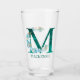 Watercolor Teal and Gold Monogram Letter M Glass