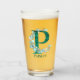 Watercolor Teal and Gold Monogram Letter P Glass
