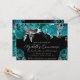 Watercolor Teal and Silver Roses Quinceanera Invitation