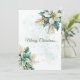 Watercolor Teal Floral Christmas Holiday Card