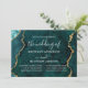 Modern Elegant Watercolor Teal and Gold Marble Agate Geode Wedding Invitation. Trendy Calligraphy Script. Couple Photo Back.
