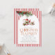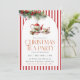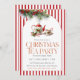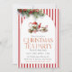 A charming Christmas tea party invitation featuring a holly teapot and matching cup with festive red stripes and evergreen accents. Ideal for elegant holiday gatherings, women’s groups, and cozy winter tea events.