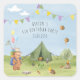 Watercolor Teddy Bear, Adventure birthday Square Sticker .