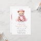 Watercolor Teddy Bear Girl 1st Birthday Invitation