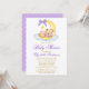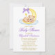 Watercolor Teddy Bear Moon Purple Dots Baby Shower Invitation