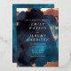 Watercolor Texture Moody Navy Wedding Invitation with original paintings. Beautiful hand painted watercolor detail textures. Very trendy, modern and edgy. Moody blue Navy. Marbling high fashion! blue royal blue.