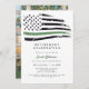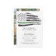 This retirement party invitation features a distressed watercolor thin green line flag and simple neutral design. This invitation can be used to celebrate Border Patrol Agents, EMS Officials, Park Rangers, Animal Control, Army, Military Police members and more.