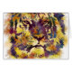 A stylised watercolor portrait of a tiger. The bright yellows and deep blues and purples contrast against each other.