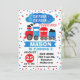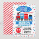 Looking for a train 1st or 2nd birthday invitation? This design includes a cute train, some blue and red confetti, a banner and various decorative elements on a white background. Some of the text is not editable. This invitation is a cute way to invite your little one's guests.