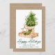 Modern Elegant Calligraphy Ink Script Watercolor Tree Kraft Happy Holidays Card - Green Script