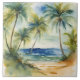 Watercolor Tropical Beach Palm Trees Tile