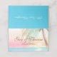 Destination wedding collection featuring a pastel watercolor of a tranquil tropical beach with palm trees. Fully customisable.