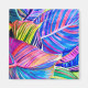 Beautiful original art painting of colourful rainbow tropical canna leaves foliage. Bright vibrant colours. Watercolor fine art.